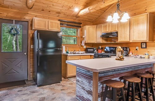 When it comes to getting away from the hustle and bustle of city life, you won't find a more peaceful location than New Lisbon. This wonderful cabin will give you the perfect amount of quiet seclusion, yet you will still have unlimited options for fun including swimming, kayaking, and fishing on the three ponds on-site! Plus, you can easily kick back on the front porch with a favorite beverage in hand as you reminisce with your favorite people. Inside, the rustic accents will spoil each lucky guest with that outdoorsy feel that welcomes you with the warmth of the gas fireplace. You won't have to be disconnected during your stay either with the free WiFi and flatscreen TV awaiting you in the comfortable living area. Plus, homecooked meals are just waiting to be prepared on the gas range in the full kitchen when everyone works up an appetite after full days of adventure. If you have larger groups, there are many cabins on the property available to rent as well!