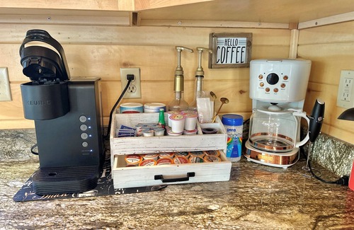 Kitchen: Fully equipped, cooking basics, spices, dish-ware & flatware, knife set, toaster, Keurig & drip coffee maker, wishwasher