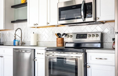 The blackout curtains are well-suited for traveling professional who may work night shifts and sleep during the day. The fully equipped kitchen and in-house washer and dryer make this listing especially convenient for those looking for longer stays.