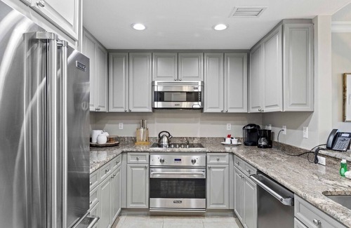 While daily housekeeping service is not provided, the unit is stocked ONCE with the following amenities. (1) Sponge • (1) Palmolive Dish Soap • (1) Surf Laundry Powder • (1) Dishwasher Detergent • (1) Regular Coffee & Decaf Coffee • (1) Condiments Kit • (1) Kitchen Towel • Paper towels (1 roll) • Facial Tissues (1 pack)