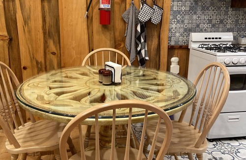 The house is very private, although there are other homes on the ranch. Its a one bedroom with a queen bed and living room has a trundle bed with two twin beds. There is a full size kitchen with all amenities needed.