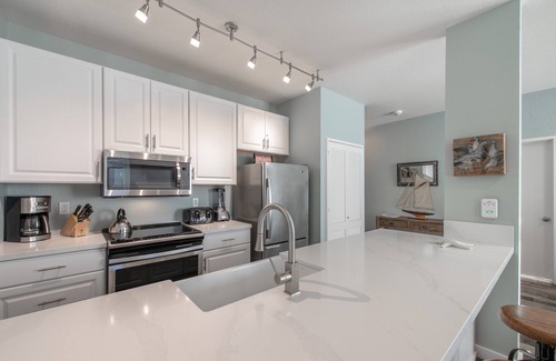 This condo was remodeled, with all new Kitchen, baths & more! The dining room; fully equipped kitchen and living room flow openly for enjoying family time. Flat screen TVs with Cable & DVD players in the living room (50” TV) and master bedroom. The master has a king bed, two guest bedrooms - one with a queen bed perfect for a couple and the other with 2 bunk beds ideal for 2-4 children. This home is on the first level making it easily accessible to the beach where you can watch the sunrise or sunset. Bask in the sun and watch the seabirds in a relaxing setting.