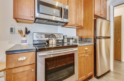 The condo itself can accommodate up to four people. The living area has a sleeper sofa, flat screen TV, and comfy seating with an adorable outdoor patio. The kitchen has all the essentials you need to cook up a delicious meal. There is a dining room table that seats six. The master bedroom features a queen bed and added in January of 2022, a set of twin bunk beds. Enjoy waking up each morning in the winter and taking in the beautiful views before gearing up and walking over to the slopes. In the summertime, you are close to many biking and famous hiking trails such as Shirley Canyon. You have the best of both worlds!
