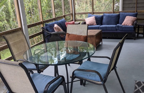 Welcome to Palmer's Point on Jeremy Creek in historic Mcclellanville. Our spacious 2700 sf 4 bedroom. 4 bath home sits on 2 acres with beautiful grand oaks. Large living room with stone fireplace and large open kitchen. Watch the boats go by from the screened back deck. The side deck has gas grill, large lower patio and screened in porch. 30 minutes to Historic downtown Charleston and IOP .