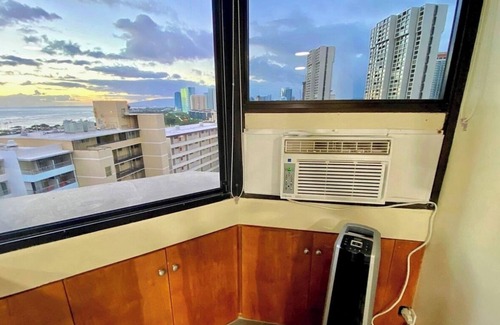 Breathtaking ocean, sunset and city skyline views from the 21st floor! Enjoy walking distance to Waikiki Beach/Hilton Lagoon and Friday Night Fireworks! Ala Moana Mall with World class Dining/Shopping are steps away. Best location in Waikiki! Newly renovated condo with granite countertops and custom cabinetry. Spectacularly comfortable beds with high quality linen along with all new kitchen, bathroom and living room essentials. Parking/pool/hot tub/BBQ/cabe/STARZ movie package with high speed WI-FI and much more included with your stay! Band New Remodeled studio, remodel includes amazing kitchen with granite counter tops and all the new kitchen essential you could think of. I speared no expense when it came to the two brand new Full size mattress. I paired them both with high quality cozy sheets and duvets. Both beds and all pillows have bed bug proof protectors to keep your mind at ease. The condo is beach theme tastefully decorated. Enjoy the breath taking partial ocean views. Enjoy a brand new Samsong 4K 50in flat screen smart TV that rotates. High speed Wifi and cable are included with premium STARZ movies on demand. Studio equipped with ample custom dressers and shelving. Have the luxury of cooking at home. Condo includes a microwave, 4 burner stovetop, Oven, toaster, rice cooker, coffee maker, tea kettle and a refrigerator with ample cups, dishes and cooking supplies. Extra bath towels and beach towels are included with your stay. The condo also has an iron, hair dryer, Pack N play crib and ample beach supplies as well.