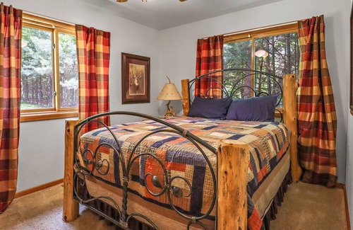 POINT LODGE OFFERS FOUR BEDROOMS THAT SLEEP 8, INCLUDING TWO MASTER SUITES WITH PRIVATE BATHROOMS. THE THIRD BATHROOM HAS A TUB SHOWER. THERE IS ALSO A WONDERFUL THREE SEASON BUNKHOUSE WITH ONE QUEEN BED THAT SERVES AS A 5TH BEDROOM IN SPRING, SUMMER AND FALL. THE BUNKHOUSE IS JUST STEPS FROM THE LODGE. THE LAUNDRY ROOM HAS A NEW FULL SIZE MAYTAG WASHER DRYER AND THERE IS PLENTY OF ROOM TO STORE GEAR IN THE MUDROOM ENTRANCE.