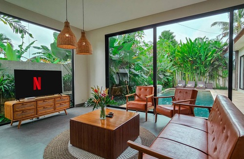 Welcome to this enchanting villa in Bali. This lovely property features 3 king bedrooms, each equipped with AC, hair dryers, and irons. With 4 bathrooms offering bidets and showers, guests will feel right at home. Relax in the wonderful ambiance of the villa and enjoy the serene surroundings. We look forward to welcoming you to our place.