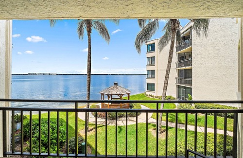 Enjoy this beautiful second floor 2 bed, 2 full bath condo 1082 sq ft. Drop your bag, grab your towel and head to the beautiful waterfront pool (heated) just steps away from the unit. Start living the Florida Lifestyle! The open water views of Boca Ciega Bay can be enjoyed from most every room. Enjoy watching for dolphins, or soaking up the beautiful water views from the private balcony. The Master bedroom has a large king, Guest bedroom has two full size beds. Condo sleeps 4. Large flat screen TV’s in both bedrooms and living room. Washer/dryer in unit. Cable and Wi-Fi included. This unit includes one Reserved parking space conveniently located just steps from the door. No need to use elevator to get to unit as parking is on same level.