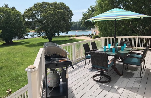 Right on the lake. Breathtaking views. A perfect home for a family or multi family vacation or getaway, business trips, or special occasion party groups. Gorgeously furnished to make you feel right at home. Basement with games and activities for kids or bar kitchenette for adults. Deck with grille and space to enjoy meals outside. Sunroom with gorgeous large windows to relax and enjoy a book.