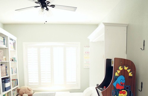 Upstairs you will find 3 bedrooms. 2 of the bedrooms have a Jack and Jill full bathroom in between. At the end of the hall is the master bedroom and bath. Smart tvs loaded with Netflix plus more is located in master bedroom, downstairs master bedroom, family room and playroom. Lots of games and toys. A park is a short walk away. The house has new floors, counters and interior newly painted. The house is fully furnished with everything you should need. We do have personal belongings in the home and closets are locked.