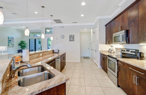 Plenty of toys including swimming pool basketball hoop, pool toys, books, board games, loungers, beach chairs and towels, coolers, stroller, highchair, pack n play and fishing poles. Newly screened picture frame lanai includes dining table and 6 chairs, seating area with couch, tables and 2 chairs, an outdoor shower and grills (gas and charcoal). You'll be conveniently located to grocery stores, gas stations, post office, restaurants, ice cream parlor, parks, boat and bike rentals, beaches and Sun Splash Family Water Park.