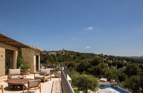 Perched on a hilltop in delightful Paradou Village and commanding views of the countryside typical to the Alpilles area, le Mas Etoile has been meticulously renovated throughout by a duo of renowned interior decorators.