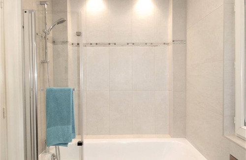 The bathroom offers a double sink and a large bathtub in which you can relax after your day of sightseeing.