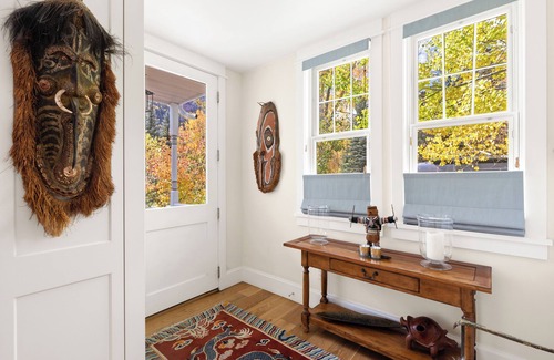 Park Place combines Victorian charm with modern style, creating a luxurious mountain retreat in Telluride. This meticulously designed five-bedroom home offers unique artwork, custom lighting, and warm, inviting decor in every room. With an open layout connecting the chef's kitchen, dining, and living areas, guests can enjoy a cozy fireplace, bay window seating, and abundant natural light from south- and east-facing windows. Start your day with coffee by the bay or savor al fresco dining on the patio.