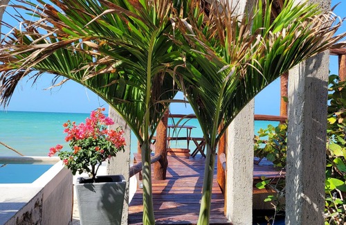Pasilla suite. Ocean view glass doors to the turquoise water, 13foot Tv screen | Cottage in Chuburná
