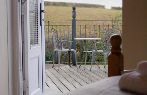 The first bedroom, located next to the bathroom, boasts a comfortable double bed with wonderful views of the nearby fields, where horses gracefully roam. Ideal for families or friends, the second twin bedroom features two single beds, a wardrobe, and a chest of drawers - offering a cozy and inviting space to recharge. The master bedroom is a true haven of relaxation, with a luxurious king-size bed, wall-mounted TV, and French doors leading onto the expansive balcony. You'll find fresh white bedding and towels provided, including a hand towel and bath towel for each guest.