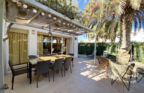 Book your vacation in this townhouse, located in a first-line beach urbanisation with a communal swimming pool. It is the ideal place to enjoy with your family, as it offers all the necessary amenities for a comfortable stay, such as a terrace with sea views, a spacious garden, air conditioning/heating in the living-dining room and main bedroom, and private parking within the urbanisation. Additionally, pets are allowed! Special offers are available for long stays during the low season.The house can accommodate a maximum of 7 adults and is distributed across 3 floors: on the ground floor, you will find a spacious living-dining room with access to the garden, a fully equipped kitchen (also with garden access), a bedroom with a single bed, and a toilet with a shower. On the first floor, there is a bedroom with a double bed and an en-suite bathroom with a shower, two bedrooms with single beds, and a full bathroom with a bathtub. On the second floor, there is a spacious terrace where you can enjoy sea views.The house is located in the Playa de Baria I urbanisation, on the first line of the beach, with extensive garden areas, a communal swimming pool, and a children's pool (open from 15/06 to 15/09). Additionally, it is close to bars, restaurants, and a large supermarket, which facilitates convenience during your stay.Spend your holidays in Vera Playa and also enjoy nearby localities such as Villaricos, Garrucha, and Mojácar. The Cabo de Gata-Níjar natural park and the Mini Hollywood theme park are just an hour's drive away.IMPORTANT: Reasonable electricity consumption up to 20 kWh/day is included. Excess will be charged. In case of a discounted monthly rental, electricity is NOT included. 1 pet/booking is allowed. Youth groups are not accepted. Smoking inside the accommodation is prohibited.
