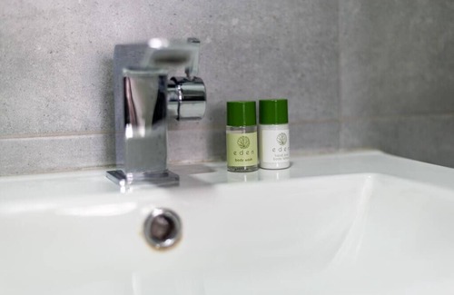 This modern and stylish studio apartment offers plenty of space and light. The open-plan space has a compact kitchen area, fully equipped with kettle, toaster, and fridge, compact dining area and bedroom. The bathroom is neat and has a standing shower, toilet and basin.