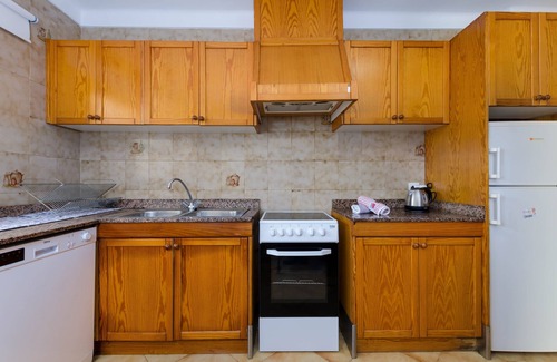 The house features an airy living - dining room with the perfect mixture of style and colours that will give our guests a feeling of peace and charm. This room, equipped with AC, is perfect for your meals indoors, chatting with your loved ones or watching the satellite TV. The kitchen, with a well cared traditional style, offers a ceramic hob and all you need to cook. The laundry room has a washing machine, an iron and an ironing board. There are 3 bedrooms in the house. One has a double bed and AC and the other two have twin beds and a fan. Two of the bedrooms also feature a closet. You'll find a baby cot and a high-chair available. Finally, two bathrooms, one with a bath and the other with a shower, complete the accommodation.
