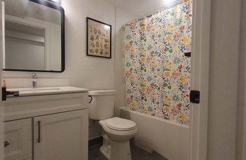 Large, fully renovated basement unit apartment in the Upper Beaches. Bright and clean. 2 bedrooms both with queen sized beds and 2 fully equipped bathrooms - both with soaker tubs. A fully equipped kitchen and ensuite laundry. Private entrance located on a residential street situated close to the beach, the Danforth and many transit options (TTC Streetcar, subway and Go Train) .