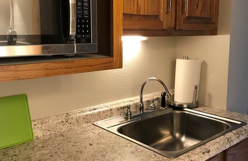 On the lower level one bedroom w/ 2 twin beds, one bedroom with a trundle day bed and a kitchenette handy for snacks and early morning coffee without disturbing whoever upstairs.