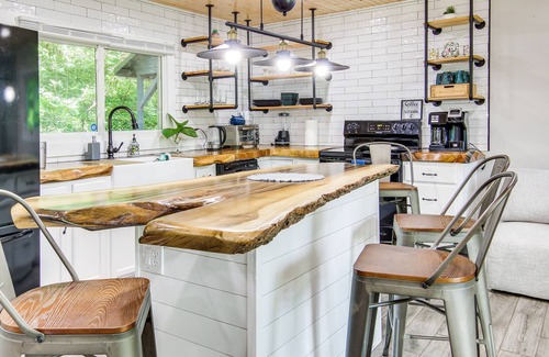 Experience the beauty of the Blue Ridge Mountains at this beautiful Hendersonville home. Ideal for outdoor enthusiasts of all ages, this 2-bedroom, 2-bathroom vacation rental gives you access to Chimney Rock State Park, just 16 miles away, for stunning views and Lake Lure for fishing, swimming, and boating. You can also take in views from the Blue Ridge Parkway, just a short drive away. After long days outside, refuel in downtown Hendersonville at a local brewery for a peaceful end to the day!-- THE PROPERTY --Pet Friendly w/ Fee | Renovated Interior | 2-Story Deck Bedroom 1: Queen Bed | Bedroom 2: Queen Bed, Full FutonINDOOR LIVING: Smart TVs, board games, books, DVD player, video library, dining table, wood-burning stove, laptop-friendly desk OUTDOOR LIVING: Private 2-story deck w/ outdoor seating, hammock KITCHEN: Cooking basics, additional kitchenette, coffee maker, dishwasher, stove/oven, refrigerator, microwave, dishware & flatware, ice maker, spices, toaster, water filter GENERAL: Free WiFi, keyless entry, complimentary toiletries, linens & towels, air conditioning, in-unit washer & dryer, laundry detergent, hair dryer, iron/board, trash bags & paper towels FAQ: Pet fee (paid pre-trip), 4WD recommended, 1 half step to access 1 bedroom/bathroom, stairs required for rest of property, 1 exterior security camera (front door)PARKING: Driveway (1 vehicle), free street parking (first-come, first-served)-- THE LOCATION --DOWNTOWN HENDERSONVILLE (~6 miles): Shops, boutiques, local restaurants, live entertainment, coffee shops, vineyards DOWNTOWN ASHEVILLE (~20 miles): Shopping & dining, The North Carolina Arboretum, Folk Art Center, Historic Grove Park Inn, Biltmore Estate, Botanical Gardens at Asheville, Biltmore Estate Winery, Western North Carolina Nature CenterHIKING: Rhododendron Lake Nature Park (9 miles), Bearwallow Mountain Trail (13 miles), Blue Ridge Parkway (14 miles), Chimney Rock State Park (16 miles), Lake Lure (19 miles)AIRPORTS: Asheville Regional Airport (9 miles), Greenville-Spartanburg International Airport (48 miles)-- REST EASY WITH US --Evolve makes it easy to find and book properties you’ll never want to leave. You can relax knowing that our properties will always be ready for you and that we’ll answer the phone 24/7. Even better, if anything is off about your stay, we’ll make it right. You can count on our homes and our people to make you feel welcome--because we know what vacation means to you.-- POLICIES --- No smoking- Pet friendly with a $50 fee (+ fees & taxes) - No events, parties, or large gatherings- Must be at least 24 years old to book- Additional fees and taxes may apply- Photo ID may be required upon check-in- NOTE: The road to the property is gravel- NOTE: The property requires 1 half step to access 1 bedroom and 1 bathroom, and additional stairs are required to access the rest of the property- NOTE: The second bedroom is only accessible via the outdoor stairs that are shown in the photos- NOTE: Your safety matters. The property features a Ring doorbell camera at the front door facing the entryway. The camera is outward facing and does not look into any interior spaces. The camera is motion activated and records video and sound when motion is detected