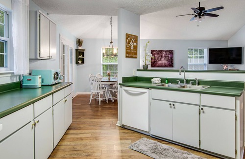 The bright, open interior welcomes casual downtime and group gatherings with updated decor and furnishings. Whip up home-cooked meals with ease in the full kitchen and gather at the dining table to share these and conversation. After you've had your fill of outdoor fun, unwind with a board game or some TV in the living room. Central air-conditioning, free WiFi, and a private washer/dryer round out the everyday home essentials.