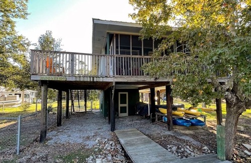 Moonrise Cottage features two bedrooms, one and a half baths, a spacious living area, and a full kitchen. The space is filled with comfortable furniture and eclectic art. Outside, you will find a large deck, screened porch, dock, and fenced dog yard. The large yard has plenty of room to play and park your boat or RV. The property is perfectly situated on an out of the way slew of the Bon Secour River. Fish off of the dock or explore the river by boat; you are minutes from the mouth of Bon Secour Bay. Within walking distance, the neighborhood features four fresh seafood markets, an outstanding restaurant, two public boat ramps, and three historic churches. The Cottage is 20 minutes from Foley, AL where you will find the Tanger outlets and OWA. OWA is a unique destination for youth sports tournaments, an amusement park, and a year round indoor water park. Foley also boasts a historic downtown with a railroad museum, beautiful park, and other local favorites. Moonrise Cottage is only 25 minutes from the gorgeous white sand beaches of Gulf Shores, AL, where you will find endless entertainment possibilities including the annual Hangout Fest. Gulf State Park features access to pristine beaches, miles of well maintained scenic biking/walking trails, and farm to table dining. A turn down the peninsula to Fort Morgan offers dog friendly beach access, bird sanctuaries, and the historic Fort itself (also dog friendly). Fort Morgan was an important fort defending the pass into Mobile Bay. Her sister fort, Fort Gaines, is a short ferry ride away across the pass on Dauphin Island. 25 minutes in the other direction will take you to the picturesque Eastern Shore city of Fairhope, AL. Fairhope is a lovely, dog friendly town with an upscale downtown shopping and dining area. Down the hill at the pier, locals gather every evening to witness the breathtaking sunsets. Whether you are snowbirds looking for a peaceful retreat or family and friends looking for adventure, Moonrise Cottage is your ideal destination!