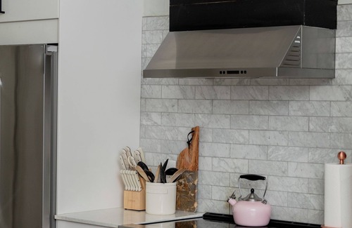 Modern, fully equipped, includes microwave, toaster and new SS appliance suite as well as quartz counters. We stock some basic items for you such as coffee, salt, pepper, paper towels, sponges & dish soap & etc. There is a Keurig coffee maker for your enjoyment.