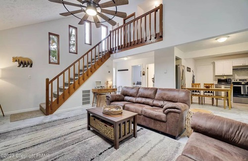 Welcome to our charming 3-bedroom, 2-bathroom rustic retreat nestled in the heart of the picturesque Pocono Mountains. Tucked away in a tranquil gated HOA community, our cozy abode offers the perfect blend of modern comfort and rustic charm.