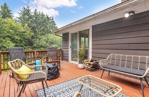 Enjoy morning coffee among the trees on the private elevated deck, with seating for 6.