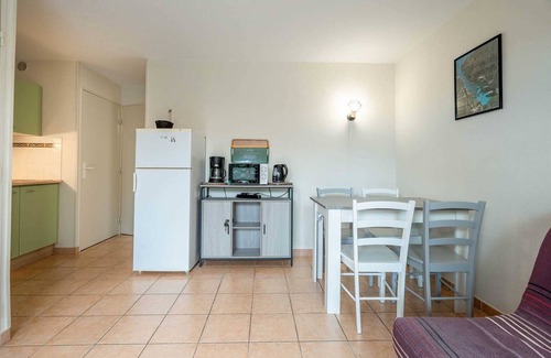 Apartment, along with its modern amenities, offers a comfortable stay for up to two guests. The apartment features one bedroom with cozy bunks, a spacious living room with a sofa, and a bathroom with a shower. It is a non-smoking accommodation, ensuring a clean and fresh environment throughout. Guests can also enjoy free private parking and access to a heated outdoor pool. The property is not pet-friendly, ensuring an allergy-free experience for all guests. Located in Agde, the property is within a short drive to nearby attractions, including local cafes, shops, and markets, making it ideal for guests seeking both relaxation and local exploration. Beziers Cap d'Agde Airport is just 11 km away, providing convenient access for international visitors. Visitors can also easily explore the surrounding area with nearby bus stations, making the location accessible for guests traveling via public transport. The apartment includes a fully equipped kitchen with a microwave, coffee machine, and other essential appliances, offering flexibility for meal preparation. With a well-maintained bathroom and modern facilities, guests can enjoy a hassle-free stay. Additionally, the property boasts a private terrace, perfect for relaxing outdoors while enjoying the surrounding views.
