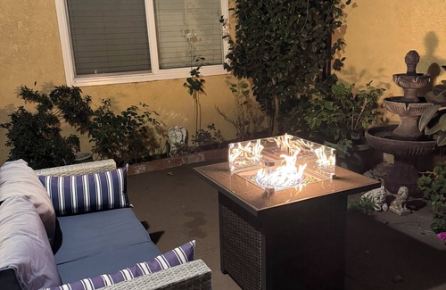 Fabulous studio/suite with private entrance with plush comfortable queen size bed, large bathroom, 42" TV, high speed internet WIFI. Small kitchenette, small refrigerator with freezer, microwave, air fryer. Fully equipped with dishes, coffee maker, coffee and tea provided. Beautiful private patio with fire pit/BBQ for your enjoyment and relaxation. Studio is attached to the main house, has a wall in between and has a separate entrance. We use the garage for our entrance so you have your privacy. Washer and dryer available. Quiet, family friendly neighborhood. Only 5 minutes drive to downtown Santa Barbara, less than a mile to Montecito.