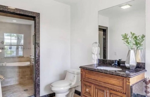 Your Peaceful Suite In The Heart of Fort Myers is a private suite attached to our main home with its own private entrance, private parking and no shared spaces. A garden walkway leads to your private suite with a granite breakfast bar, custom cabinetry, full bath with huge shower & soaker tub. Within walking distance to shopping outlets, hospitals, restaurants and only 15-20 mins from RSW airport, downtown and 30 minutes to beaches. This home is super private, safe, and convenient to everything!