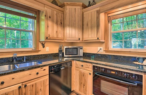 When you’re in need of an outdoorsy retreat, look no further than this 2-bedroom, 2-bath cabin in Sylva. The vacation rental offers guests a quiet location tucked away between tall trees where you can sip hot cocoa around the fire while listening to the babbling creek, curl up by the fireplace for a movie night, or play arcade and tabletop games in the game room! When you want to venture out, take advantage of the location and spend a day in the Great Smoky Mountains National Park.