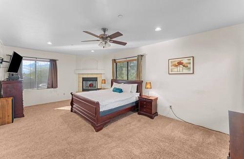 Bring the whole family to this extravagant home with lots of room for fun! The vaulted ceilings and open feel allow tons of light into the space. With this Tuscan style 2-story you have room to sleep 9 people plus with an office flex space! Play a game of Basketball in the front yard driveway, prepare a large meal in the oversized kitchen and dining room, or watch the stars on the rooftop deck with panoramic MOUNTAIN VIEWS. There are so many spaces to see!
