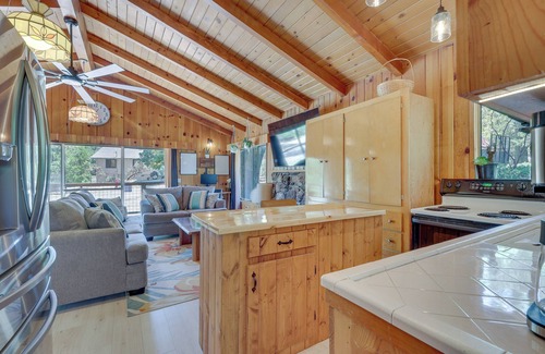 Follow the redwoods to this California cabin, aptly situated for both hiking in Yosemite and boating on Bass Lake. In between outdoor excursions, savor all that this 2-bed, 2-bath vacation rental has to offer, like the spacious patio — perfect for morning coffee, BBQs, or stargazing. Visiting in winter? Cozy up by the wood-burning fireplace.