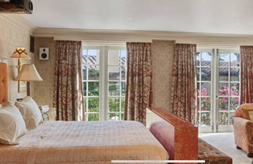 The main residence features 5 bedrooms and 6.5 bathrooms, 5 fireplaces, library, office, fitness room, media room, and ocean views from Carmel Beach to the Fish Ranch and Stillwater Cove. Handcrafted by artisans from France, you will be amazed by the hand-painted tile murals, inlay bleached walnut and maple floors, hand-painted beam ceilings, and marble accents. The 17th Century French mantle finishes off the living room with just the right panache.