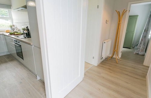 The living room French doors open on to a simply neat garden – eat al fresco and sip a glass of wine as the sun goes down. Or dine together in the living room with the cosy wood-burner belting out the heat. A sleek and polished kitchen has all a cook should need. The spotless modern bathroom has a vast shower to wash away the beachy salt.