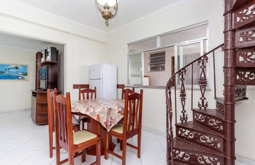 Excellent penthouse with 240 m2, just a bit more than one block from Contorno Avenue (oceanfront), in the best site of Praia do Forte. Building with 2 apartments per floor, facing rising, wonderful view to the sea and the most famous postcard of Cabo Frio, Forte São Mateus. 4 bedrooms (2 suites) plus maid's bedroom, 3 double beds, two 29-inch TVs, cable TV (Sky), two refrigerators, washing machine, coffee machine, microwave, four bathrooms, three living rooms (one is a hall with 35 m2), 2 parking places, ceiling fans (in 3 bedrooms), barbecue, and the best: Top quality for your comfort, this way you won't miss your home. Maximum number of people: 10 (Building rule: Pets are not allowed). Bring your notebook: here you have wireless internet.