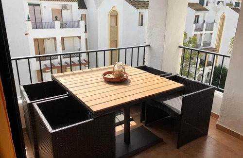 Yes, this Penthouse duplex Atlanterra Playa has a swimming pool. Check the Facility Overview section for details about the pool and other available facilities.