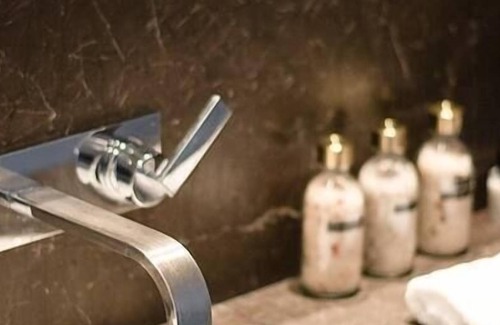 • A bedroom with a king-size bed, views of the Palace of Justice, and a marble bathroom;