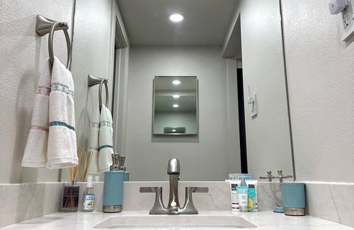 A beautiful, newly remodeled private bedroom and bathroom on the shores of Lake Dillon is the perfect basecamp for all your skiing and snowshoeing adventures. This fully equipped 2nd floor room is a stand-alone bedroom and bathroom off a shared foyer/mud room. Enjoy privacy and self-check-in with an electronic, wi-fi enabled lock. Room includes a memory foam queen bed, high-speed wi-fi, a ceiling fan, a microwave, a mini-fridge with freezer, and a 42” TV with Apple TV to access all your streaming platforms. Additionally, there is a fully equipped coffee/tea station with everything you need to get your day started or wind down your evening. The bathroom includes a well-lit vanity with a separate toilet room and a stand-up shower with an adjustable hand shower. All linens, towels, and travel toiletries included. Just outside your room, you can enjoy views of Lake Dillon and the mountains of the Ten Mile range. Free parking is just steps from the entry.
