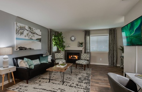 Modern, luxurious 2 bed/2 bath apartment with free parking, wifi, air conditioning, kitchen, laundry, and three 55" HD Smart TVs with Netflix, Disney+ and Hulu. (1 in each bedroom, and 1 in the living room).
