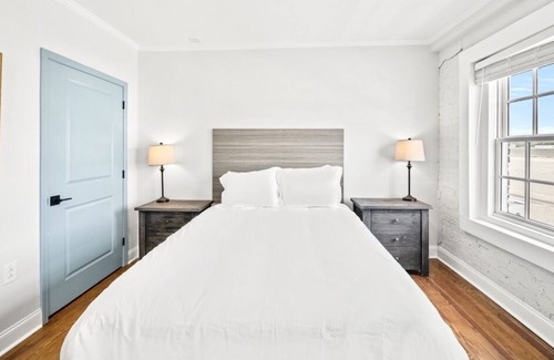 Spacious living room includes a comfy queen-sized sleeper sofa for guests seeking additional sleeping accommodations, on-street parking, free high-speed WiFi, and keyless access.
