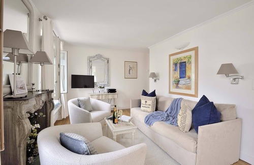 This 1 bedroom, 1.5-bathroom apartment is air-conditioned (with one powerful mobile unit) and showcases lovely views of the top of the Eiffel Tower. Newly remodeled, comfortable and perfectly furnished for your stay in Paris, the Pomeral offers all of the modern conveniences you could need. A decadent highlight of the is the stylish bathroom, which features a unique lion head tap in the luxurious bathtub.