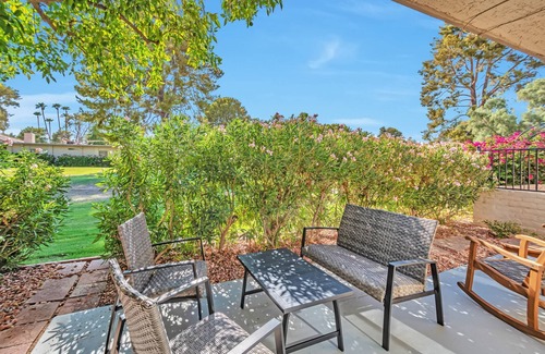 This home has a great floor plan featuring 2 bedrooms, 2 bath that sleeps 6. The living room has a sleeper sofa (Queen size), love seat, chair, 55” Smart TV with cable and a desk to offer some work space. Just off the living room is the arcadia door that leads you to the back patio with outdoor seating. Be sure to make some time to BBQ on the gas grill and enjoy the nice front courtyard with outdoor dining. The kitchen is well equipped for all your cooking needs for a great night in. It includes cooktop stove/oven, microwave, dishwasher, fridge, Keurig coffee maker and Traditional coffee maker and kitchen utensils. The dining Room seats 6 plus there are 2 bar stools at the kitchen counter. No reason to go home with dirty laundry there is a washer and dryer in the garage for your use during your stay.