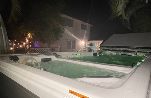 Outdoor is a swim spa with the option of dual temperature water. It is separated into two parts, a swimmer and a hot tub. With its lush greenery, water feature, hammock resting, there's absolutely no doubt you'll enjoy the peaceful atmosphere of this quiet and peaceful home/neighborhood.