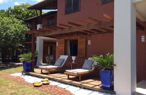 Beautiful decorated house with 180 m2, in the closed condominium Vila Nova do Castelo in Praia do Forte, located near the main entrance of Praia do Forte, on the access road to the Castle Garcia D'Àvila.