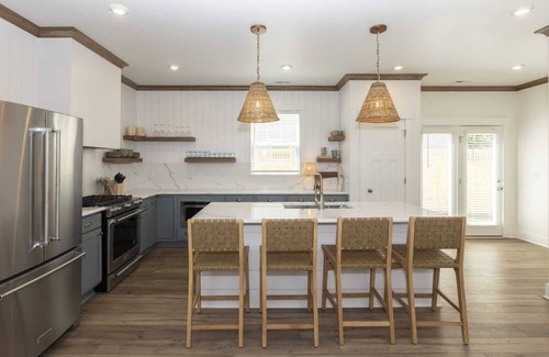Enjoy all the comforts of home at our newly built and decorated house with all new stainless steel appliances, quartz countertops, tile bathrooms, new furniture, and fresh new linens! The House is a 5-bedroom house, sleeping 12 with 4 full baths and an Outdoor Shower! The open floor plan of the kitchen, dining, and living room allows everyone to be together. The large bedrooms give everyone space. Each bedroom is equipped with its own smart TV. In the backyard enjoy a patio with seating and a gas grill for cooking and entertaining. The house has 2 parking spaces in the driveway.